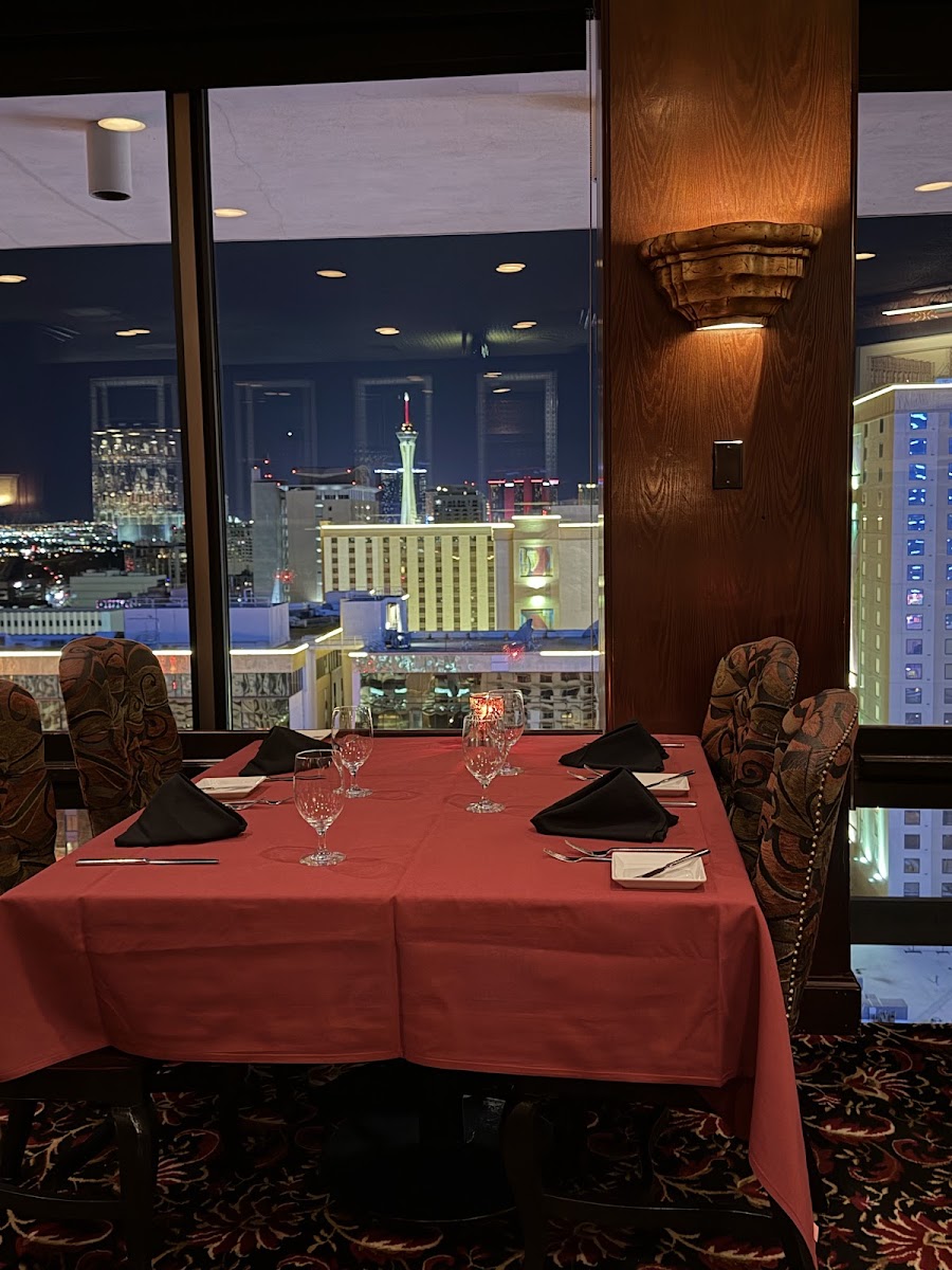 As you ascend from the bustling streets of downtown Las Vegas, the atmosphere transforms into one of elegance and timeless charm. The steakhouse boasts stunning 360-degree views that provide an enchanting backdrop for a romantic dinner or a celebratory feast. The decor echoes old-school Vegas glamour, creating an inviting ambiance that makes every guest feel special.