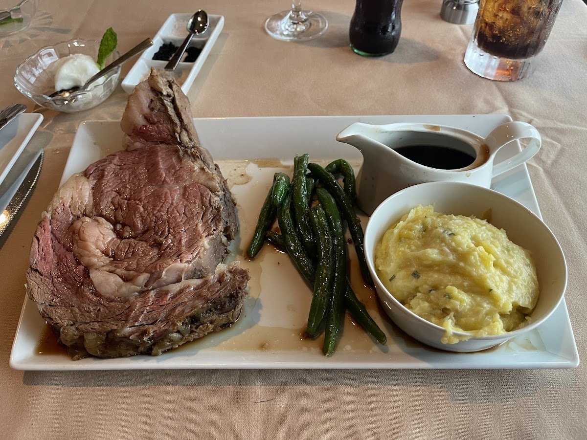 The menu at Top Of Binion’s Steakhouse is a masterclass in culinary excellence, showcasing high-quality meats and indulgent desserts. The star attraction, the Binion’s Prime Rib, is slow-roasted to perfection and encased in a rock salt crust infused with fresh garlic, rosemary, thyme, basil, and black pepper. It’s served alongside rich au jus and zesty horseradish to elevate its robust flavor. For those seeking a melt-in-your-mouth experience, the Filet Mignon is also an excellent choice, known for its tenderness and exquisite taste.